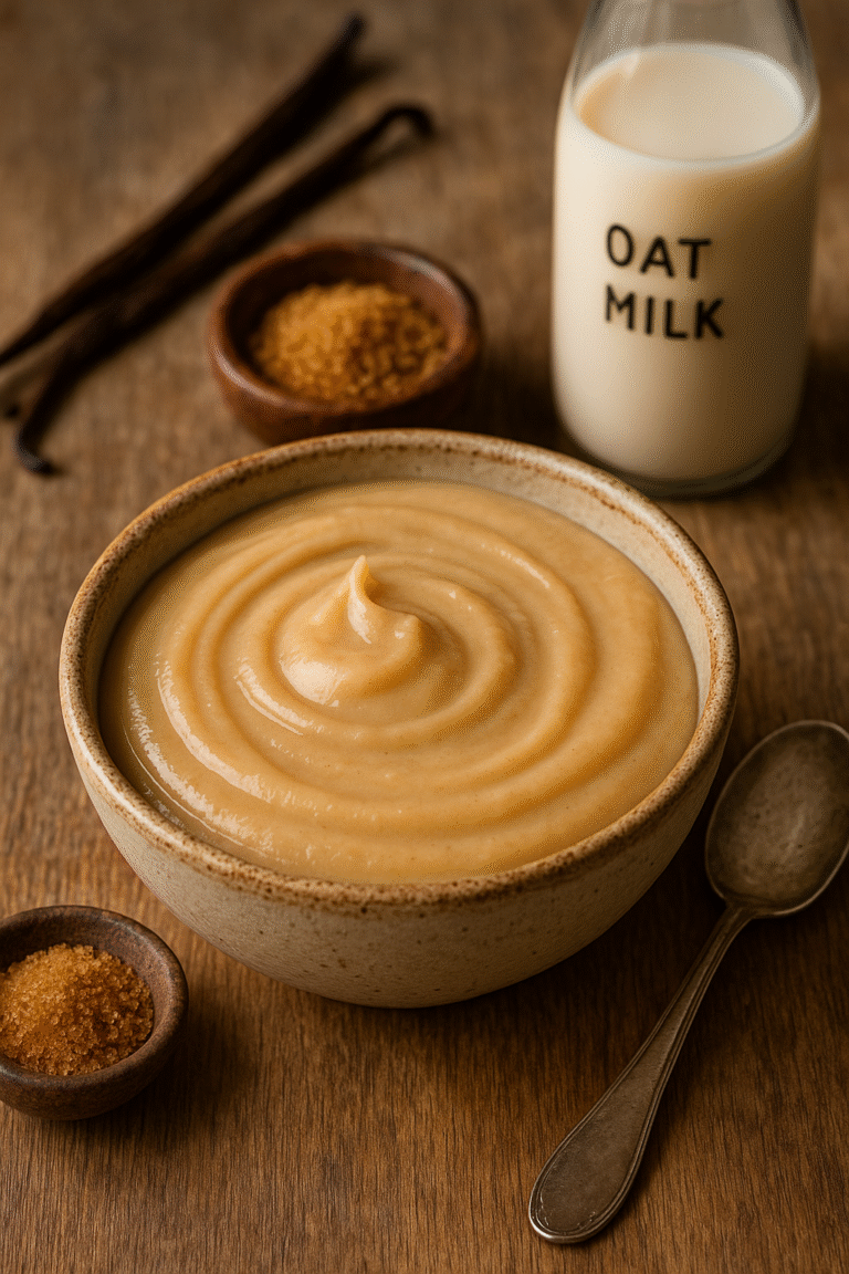 Pourquoi cette recette séduit-elle autant ? Tout d’abord, le lait d’avoine, naturellement doux et crémeux, apporte une texture fluide et légère sans l’épaisseur parfois lourde des crèmes classiques au lait entier. Ensuite, le sucre de coco, à l’index glycémique plus bas que le sucre blanc, offre un goût caramélisé subtil et naturellement parfumé. Le résultat ? Une crème pâtissière healthy, parfaitement équilibrée, qui ravit autant les papilles que le corps.